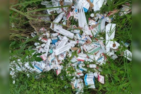 Aseguran miles de medicamentos abandonados en lote baldío de Xalapa