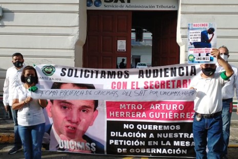 Jubilados del IMSS se manifiestan en oficinas del SAT; exigen devolución de recursos