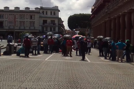 Continúa bloqueo de trabajadores de la alcoholera de Orizaba en centro de Xalapa