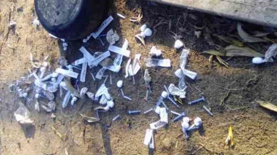 Encuentran jeringas usadas para aplicar vacuna Covid en parque de Coatzacoalcos