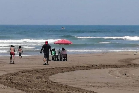 Captan a mujer con tanque de oxígeno en playa de Coatzacoalcos