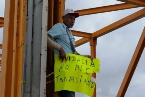 Pescador se encadena a un puente en Coatzacoalcos y pidió audiencia con AMLO