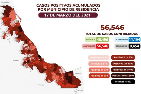 Veracruz registra 91 contagios y 19 muertes por Covid-19 en un día