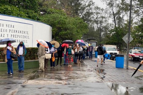 Con largas filas y lluvia, inicia vacunación de adultos mayores en el Puerto de Veracruz