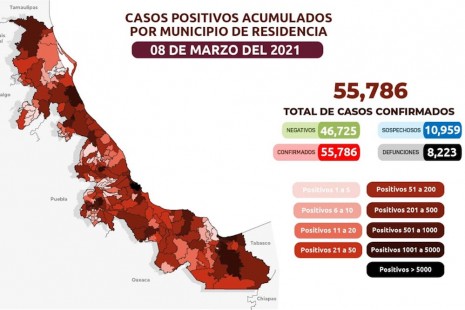 Veracruz registra 42 contagios y solo un fallecido por Covid-19 en un día