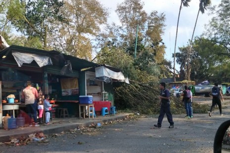 Fuertes rachas de viento derriban 3 árboles frente al Congreso del Estado