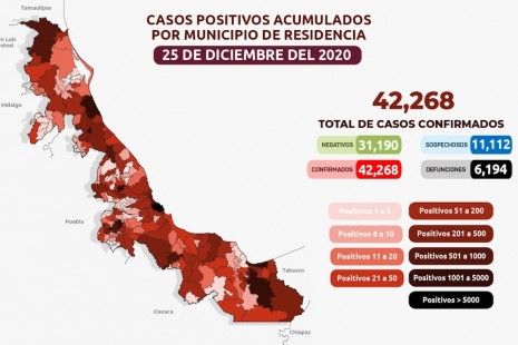 Veracruz acumula 42 mil 268 contagios y 6 mil 194 defunciones por Covid-19