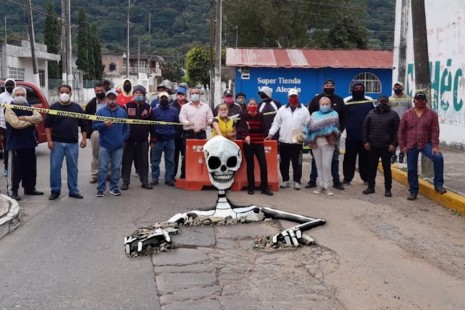 Decoran baches con catrinas, calaveras y “muertos” en Mendoza, Veracruz