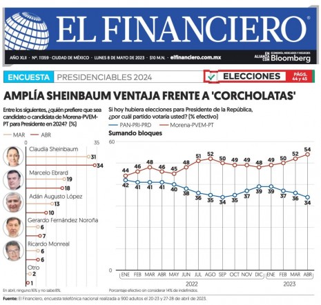 Sheinbaum lidera preferencias; alianza “Va Por México” no tiene figura visible: Reforma