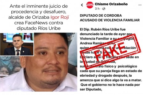 Ante el inminente juicio de procedencia y desafuero, alcalde de Orizaba crea Fake News contra diputado Ríos Uribe
