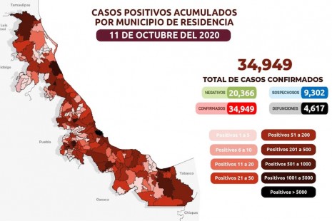 Veracruz cerca de los 35 mil casos positivos de Coronavirus
