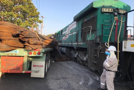 Tráiler intenta ganarle el paso al tren y se lo lleva en la ciudad de Veracruz
