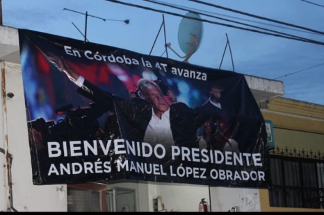 Amanecen lonas de bienvenida para AMLO