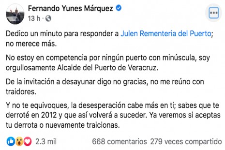 Los pleitos en el PAN; "No me reúno con traidores" dice Fernando Yunes a Julen Rementeria