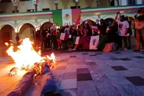 En Veracruz, mujeres queman muñeco de AMLO en protesta por feminicidios