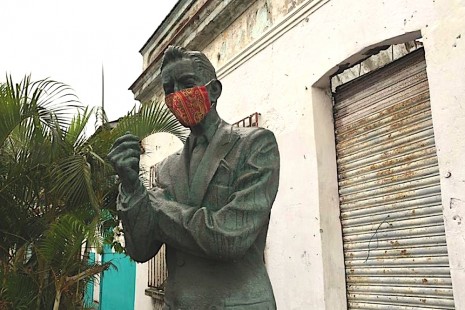 Colocan cubrebocas a escultura de Agustín Lara para concientizar sobre su uso