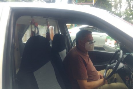 Taxistas independientes de Xalapa, instalan panel de protección contra Covid