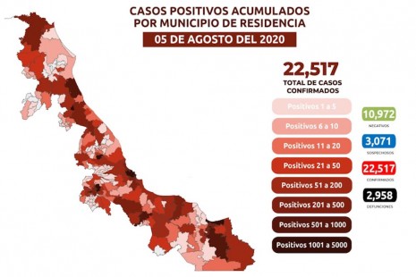 Veracruz cerca de las 3 mil muertes por coronavirus; hay 22,517 contagios