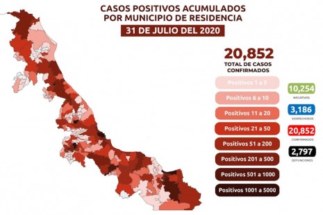 Veracruz, acumula 2 mil 797 muertes por Covid-19; hay 20 mil 852 contagios