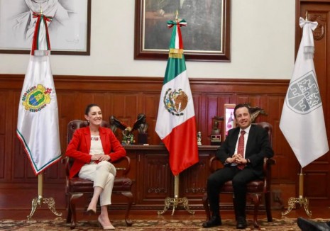 Cuitláhuac García recibe a la jefa de Gobierno Claudia Sheinbau; consolidan colaboración entre CMDX y Veracruz