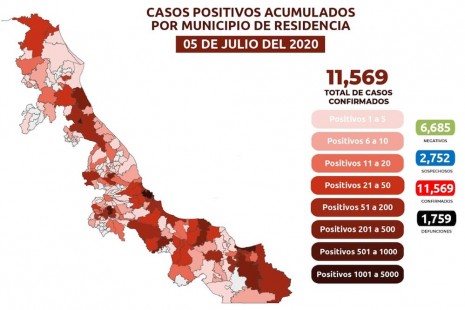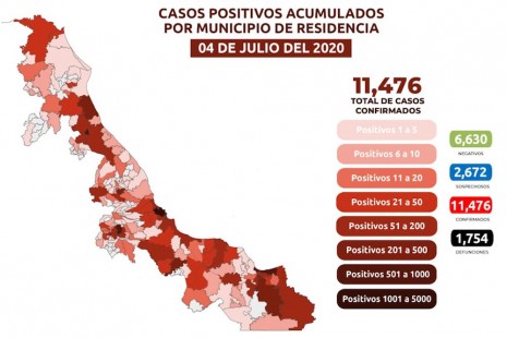 Veracruz registra 11 mil 476 casos positivos y mil 754 fallecimientos por Covid-19