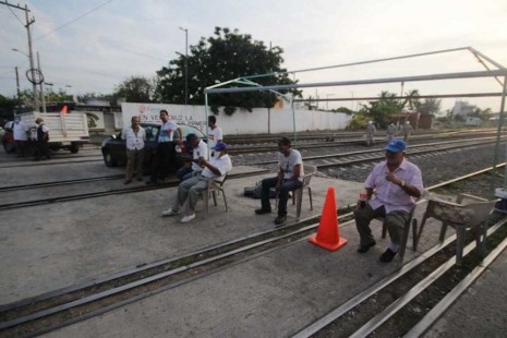 Ex trabajadores portuarios bloquean vías del tren en el Puerto de Veracruz