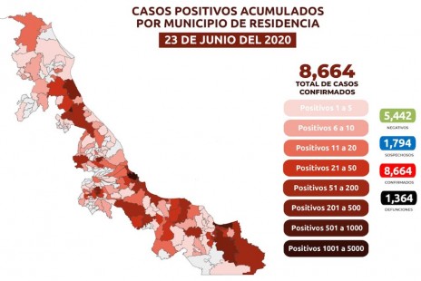Veracruz registra mil 364 muertes y 8 mil 664 casos positivos de Coronavirus