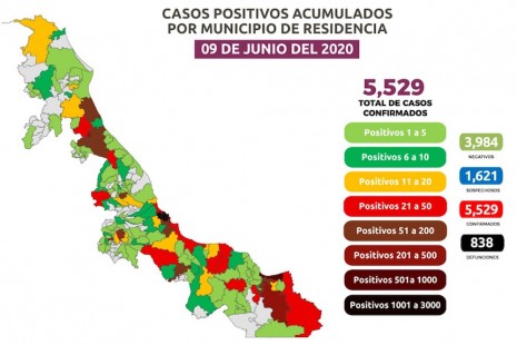 Veracruz registra en total 838 muertes y 5 mil 529 casos positivos de coronavirus