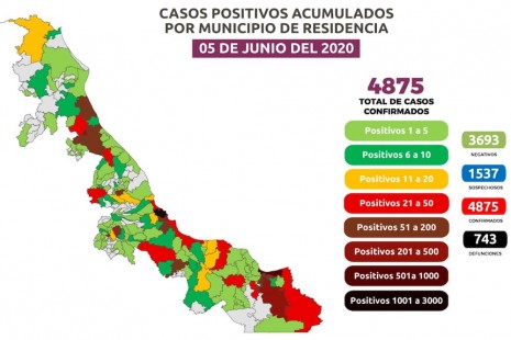Veracruz supera los 5 mil casos de coronavirus; hay registro de 769 muertes