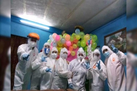 Personal del Centro de Alta Especialidad usan trajes contra covid para fiesta