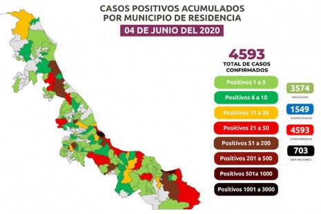 Suben a 703 muertes y 4 mil 593 casos confirmados de Covid-19 en Veracruz