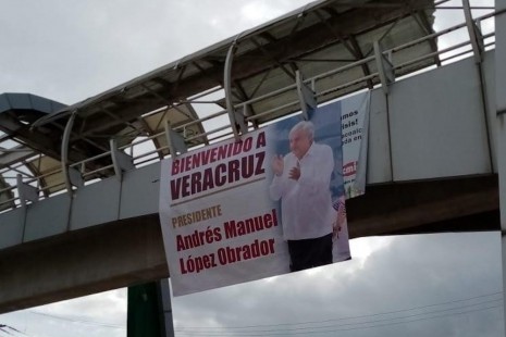 Colocan mantas de bienvenida en el sur de Veracruz, ante la llegada de López Obrador