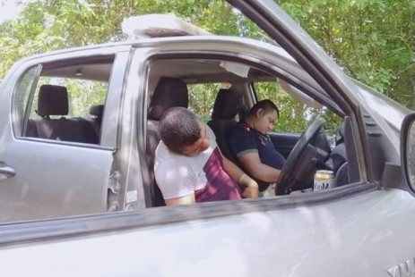 Policías ebrios se quedan dormidos dentro de la patrulla en de Coxquihui, Veracruz