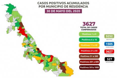Suman 527 muertes por y 3 mil 627 casos positivos de coronavirus en Veracruz
