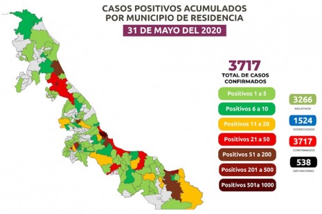 En Veracruz suman 538 defunciones y 3 mil 717 contagios de Covid-19