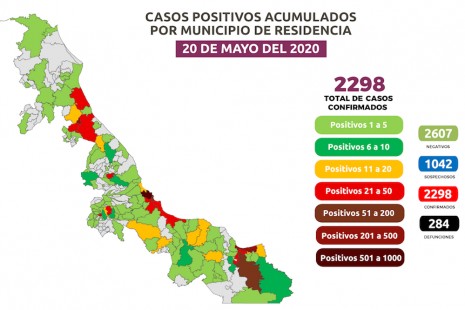 Suman 284 defunciones y 2 mil 298 casos positivos de coronavirus en Veracruz