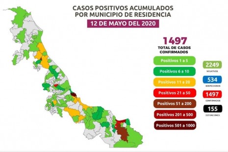 Veracruz registra 20 muertes en 24 horas por Covid-19; suman 155 decesos y 1,497 contagios
