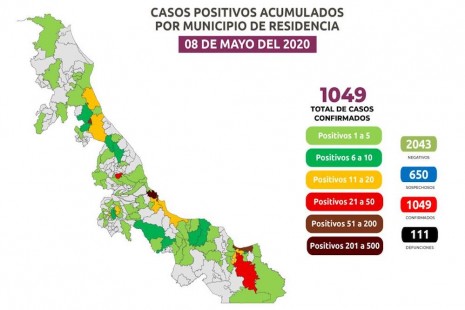Suman 111 muertes y 1,049 casos positivos de coronavirus en Veracruz