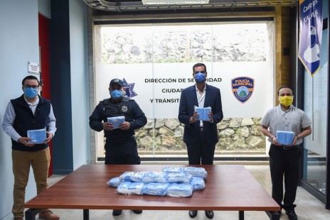 Recibe Policía Municipal de Xalapa cubrebocas donados por OXXO