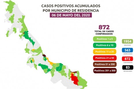 Sube a 83 el número de muertes por coronavirus y 872 casos positivos en Veracruz