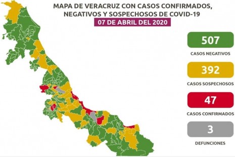 Coronavirus en Veracruz: 3 muertos, 47 contagiados y 392 sospechosos