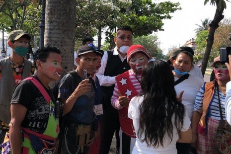 Payasos y artistas callejeros en Veracruz protestan piden apoyo ante coronavirus