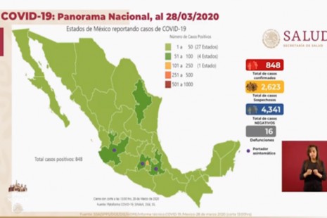 México registra 16 muertes por coronavirus; suman 848 infectados