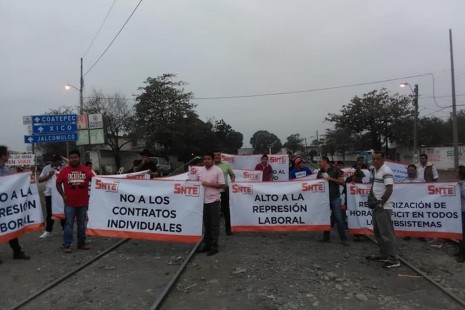Integrantes del SNTE bloquea vías del tren en Veracruz, por despidos