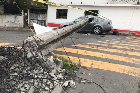 Poste de la luz cae sobre vehículo en el Puerto de Veracruz