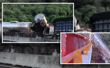 En Veracruz, tráiler se queda sin frenos e impacta contra pipa en puente de Plan del Río