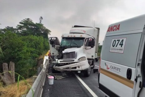 Chofer queda prensado luego de choque de tráilers en Veracruz; comenzó la rapiña