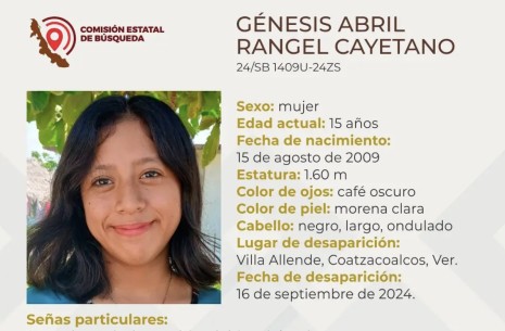 Ella es Génesis, tiene 15 años y desapareció al sur de Veracruz