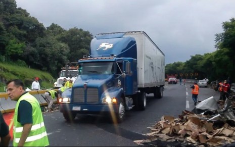 Vuelca tráiler en Autopista Orizaba-Córdoba; habitantes llegan a la rapiña