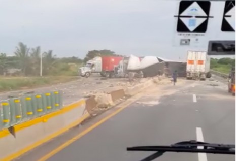 Cierre por tráiler accidentado en la carretera Coatzacoalcos-Villahermosa